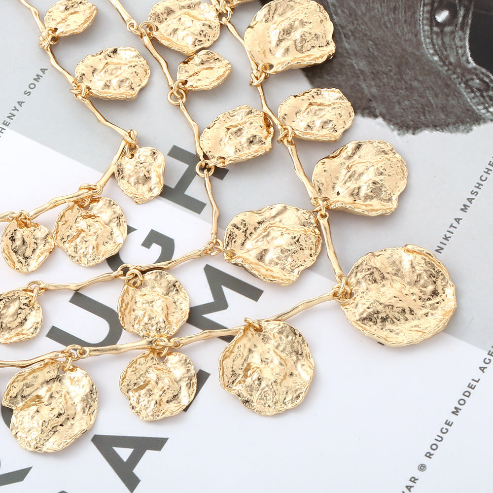 Made with high-quality zinc alloy and coated with radiant 18K gold tone, each hammered disc is uniquely sculpted to mirror natural geological textures, enhancing light reflection and a sense of luxurious depth.