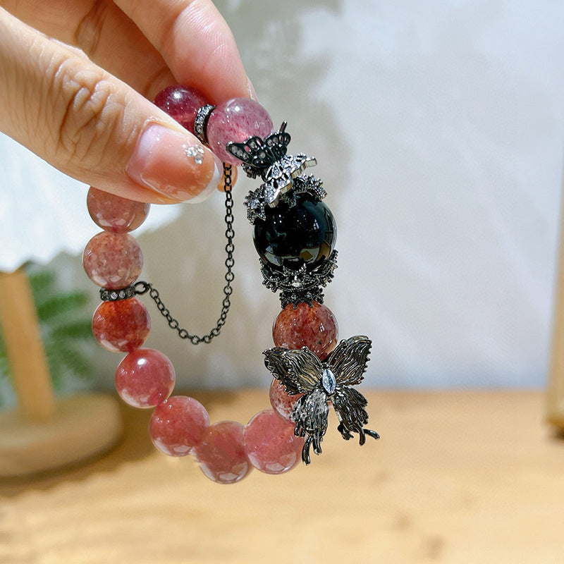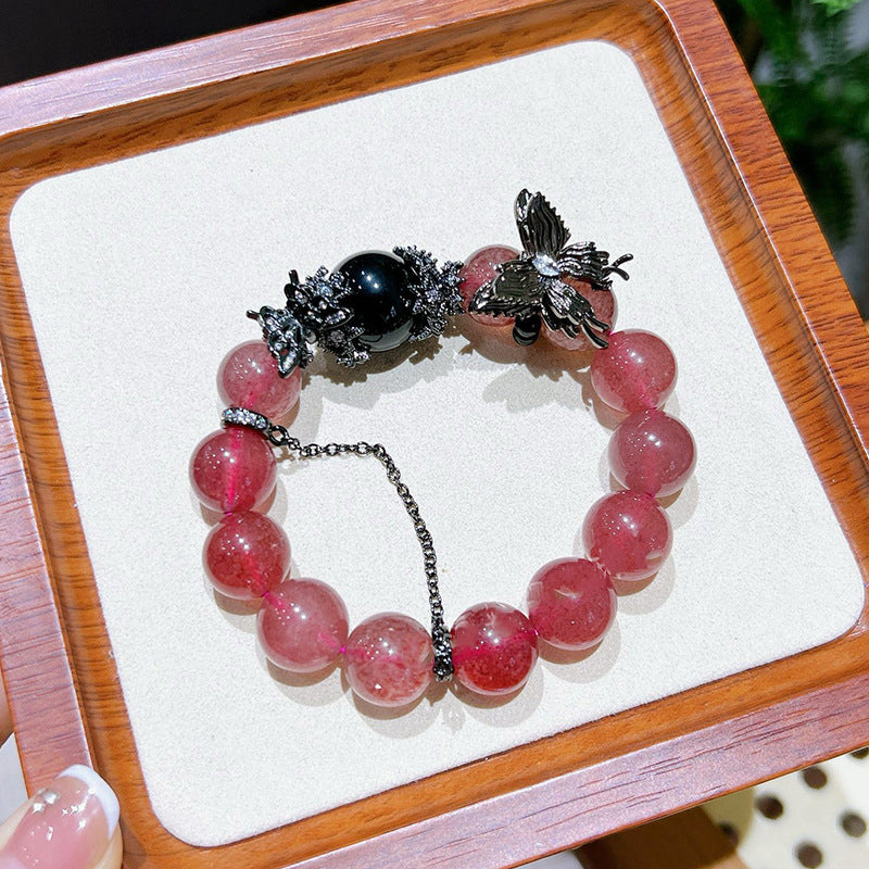 This elegant bracelet combines the nurturing power of Strawberry Quartz with the protective strength of Black Obsidian, bringing balance and stability to your life. Ideal for those seeking emotional healing and protection, this crystal bracelet supports spiritual growth while keeping you grounded. The beautiful design of these powerful gemstones makes it a perfect accessory for daily wear or meditation sessions, helping to promote positivity and ward off negativity.