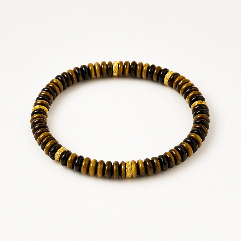 A blaze of solar fortitude and earthly abundance, this Tiger's Eye Abacus Bracelet harnesses the primal energy of sunlit sands and ancient stone.  Carved from golden Tiger’s Eye—a dynamic quartz infused with iron oxides—each 5mm bead glows with hypnotic chatoyancy, its bands of amber and gold shimmering like a desert horizon under flame.  Lightweight and versatile, its slender design layers effortlessly with other wrist adornments, merging strength with subtlety.